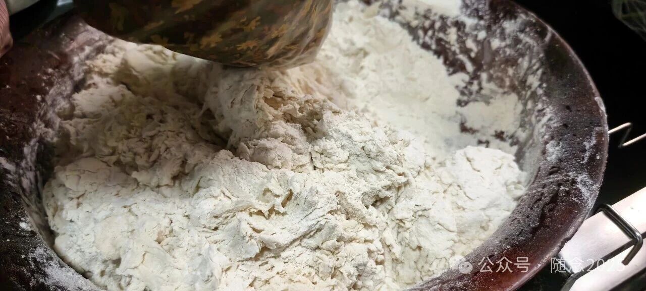 做麦鼓头,和面、馅料把关非常重要。面粉是精选的小麦粉,和面时水逐渐加入粉中,边揉边观察,揉到面团细腻又不粘的程度才算好。