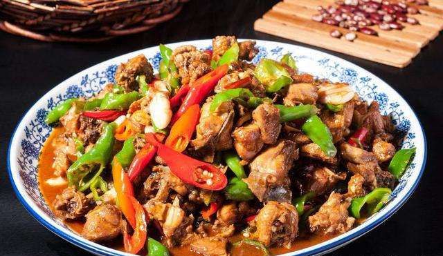 酱香出锅料:青椒块50克,红青椒50克,紫葱头50克