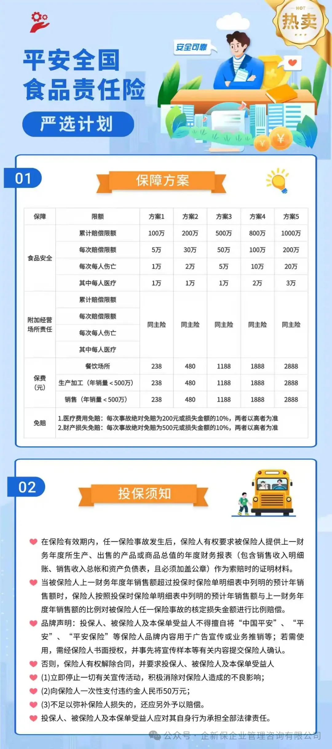 平安食品责任险(严选计划),就像为企业系上一条“安全带”,不一定每天用到,但关键时刻能救命。
