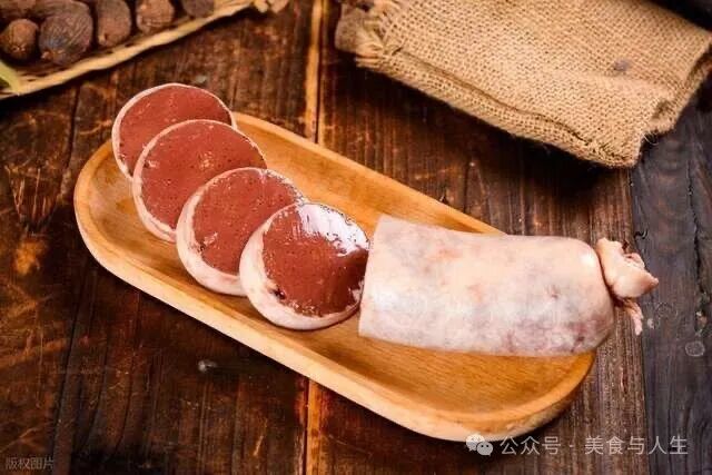 新鲜猪血加酸菜、香料灌入肠衣,蒸熟后切片,常配酸菜白肉锅。色泽暗红、血腥味浓,东北人待客必备,南方人多不敢尝试。