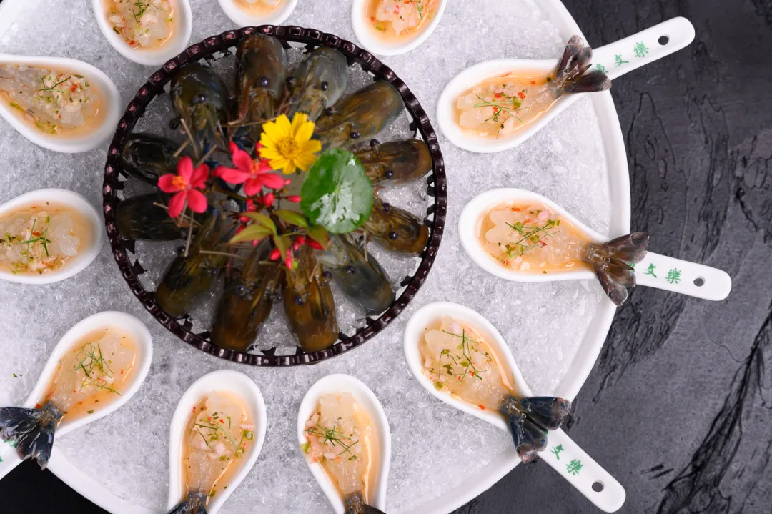 到店必吃的特色招牌非泰式罗氏虾生莫属,伴着泰汁和柠檬草,味道酸酸甜甜、开胃又美味。