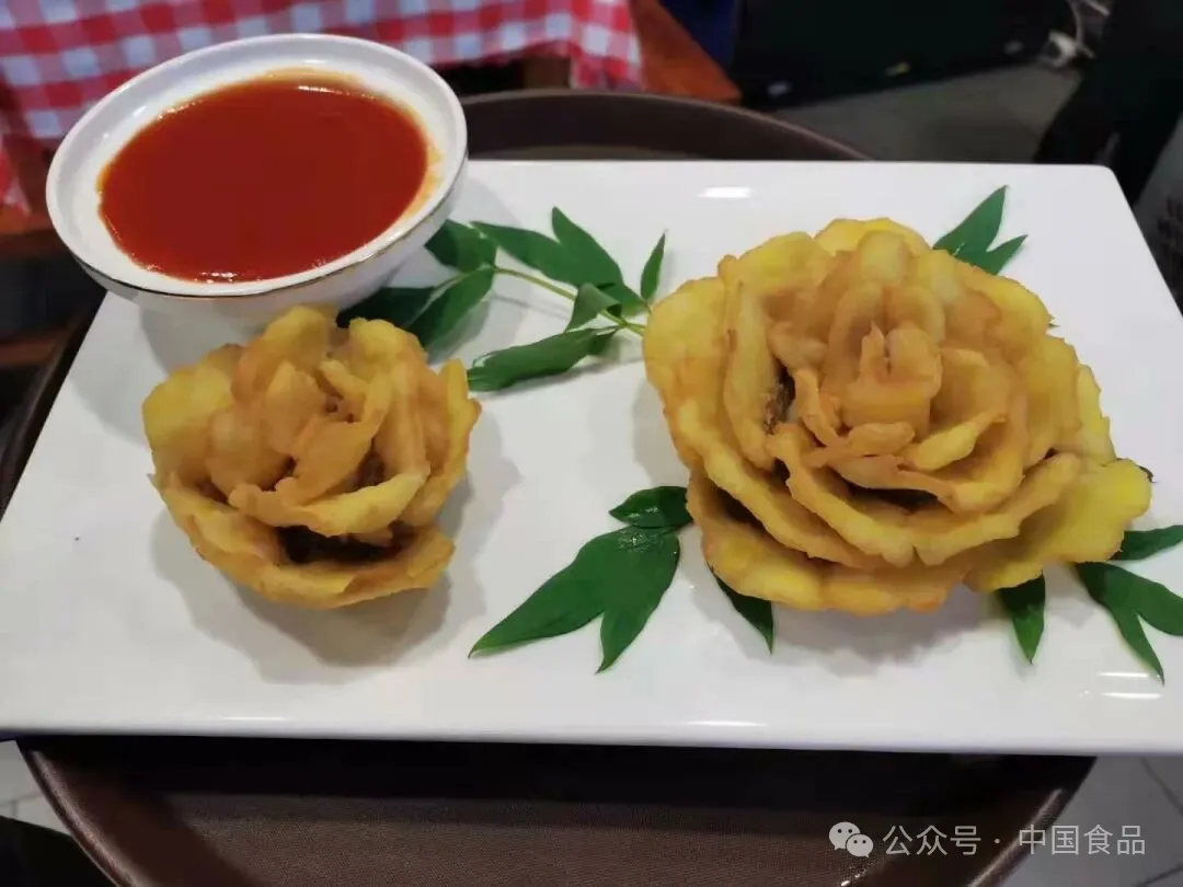 然后来看“牡丹宴”的造型。“牡丹宴”的每一道菜肴都造型美观,宛如一件件精美的艺术品,让人不忍下口。
