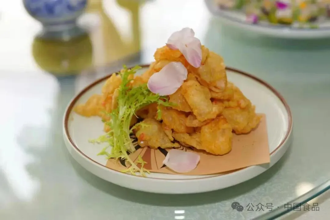 接着来看“牡丹宴”的烹饪方法。厨师团队将本味、本色视为菜品的上乘标准,注重凸显食材的本味,追求清鲜平和的口感,让食客能够品尝到牡丹最纯粹的味道。为此,他们根据牡丹不同部位的特性因材施艺,灵活采用炸、溜、爆炒、蒸、煮等烹饪技法,力求最大程度地激发牡丹食材的独特风味。