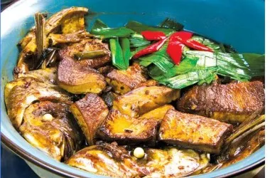 龙羊暖碗最初便是以猪骨、猪肚等熬汤,待到香气出来时把豆腐、冬笋、腌菜等食材放进,大火熬煮,小火慢炖,直至香味四溢,弥漫整个灶间。这便是龙羊山里的暖碗菜了。虽叫暖碗,用的其实是锅,铜锅底下烧上木炭,锅内的食材经炭火慢炖缓缓散发出诱人的香气,现已成为富阳又一极具特色的饮食文化。