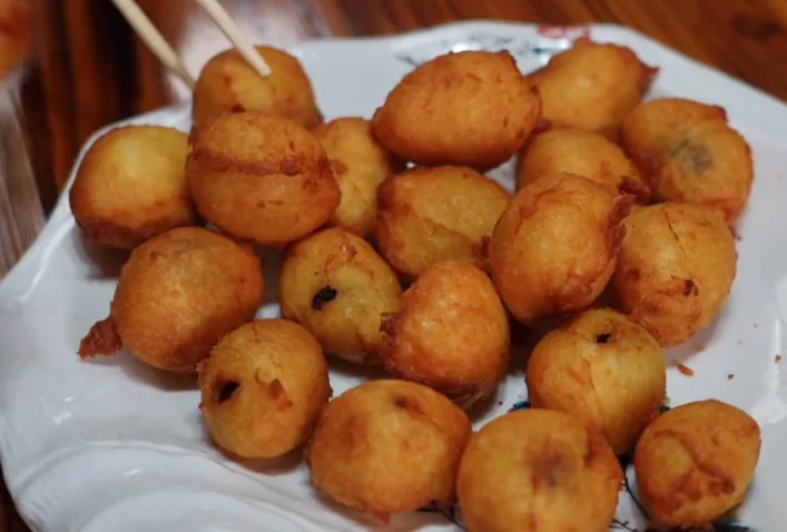 瓤枣是金塔人逢年过节必备的特色小吃,更是情感的寄托。制作工艺颇具巧思,先将面粉用热水烫制揉成面团,再把去核的红枣裹上面团,放入热油中炸至金黄圆润。成品外皮泛着诱人光泽,口感软糯香甜,烫面的绵软与红枣的甜蜜完美交融,甜而不腻,越嚼越香。每一颗瓤枣都承载着家庭的温馨时刻,是刻在金塔人骨子里的节庆味道。