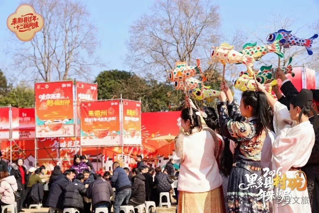 ⭐内容:徽州地道年猪汤(免费品尝);徽州特色暖锅市集;徽州传统民俗演出;舞狮讨彩春联送福