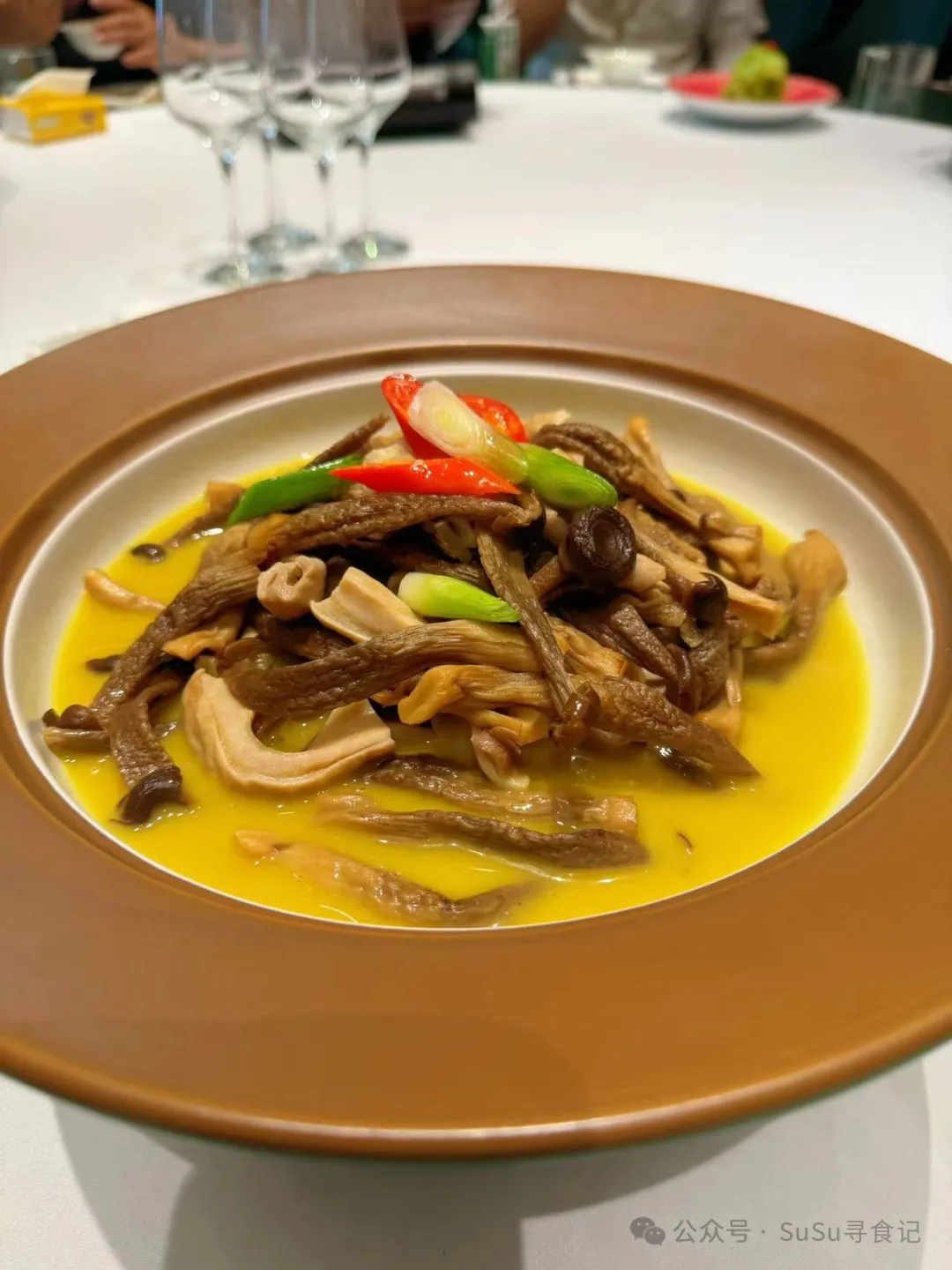 鹿茸菌烧肚条,鹿茸菌的分量比较足,肚条依旧保留了一些爽脆的口感,整体来说口感还可以。