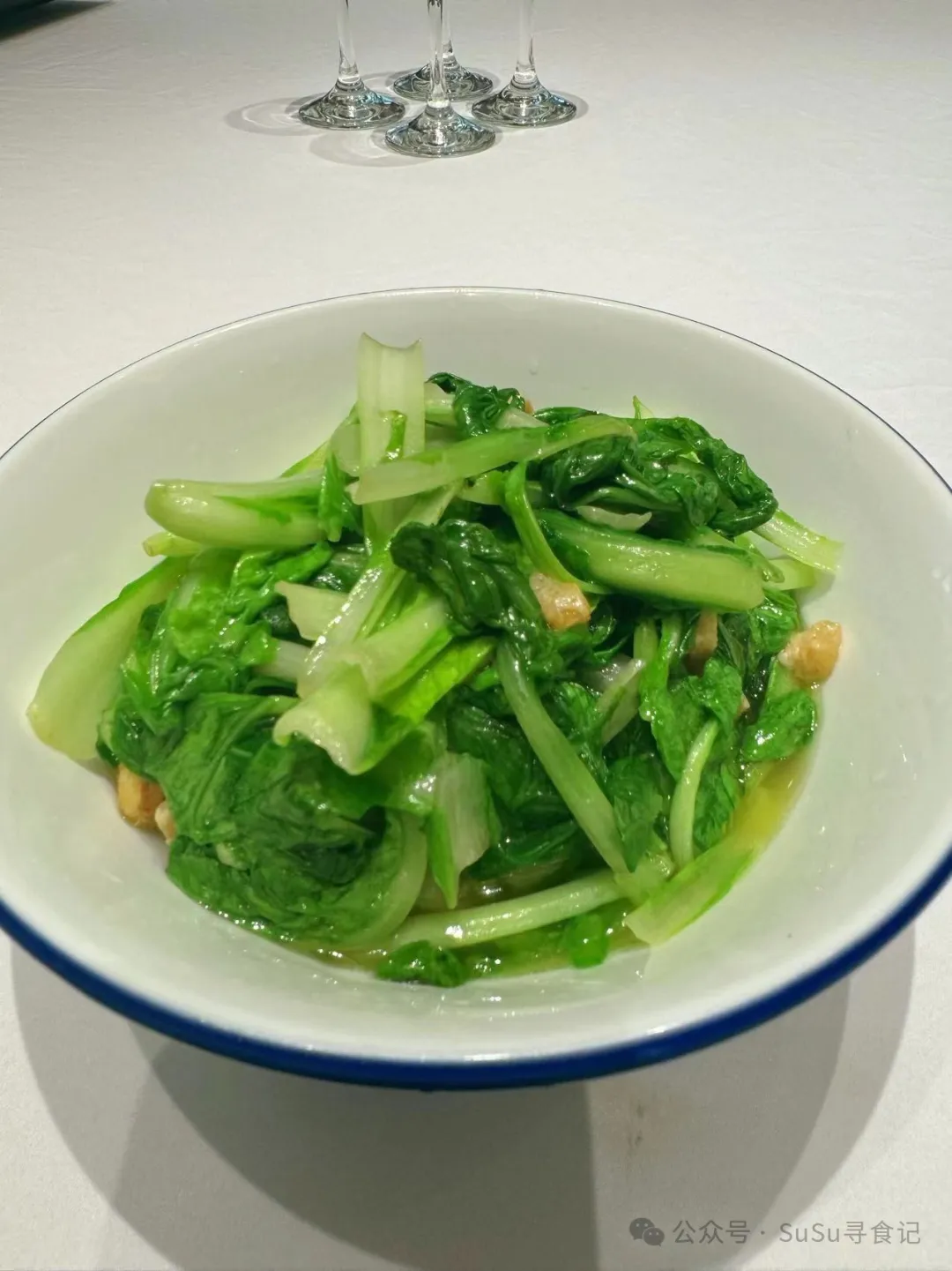 油渣毛白菜,毛白菜吃的出来是生炒的,不是焯水的,口感还是比较脆的,油渣很香,美中不足就是油有点大了。
