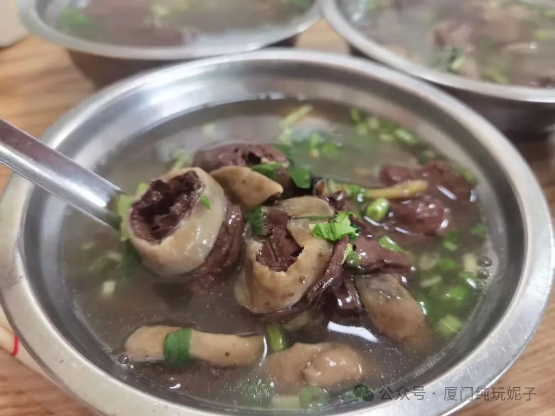 沙茶面:厦门的灵魂食物,没吃过沙茶面,就不算来过厦门。精髓在于那碗浓稠的沙茶汤底,用花生酱、沙茶酱等精心熬制,香浓微辣,越品越有滋味。配料自选,豆腐、脱骨肉、大肠、虾仁是经典搭配,最后别忘了剪一段油条泡进去,吸饱汤汁的油条,是整碗面的点睛之笔。
