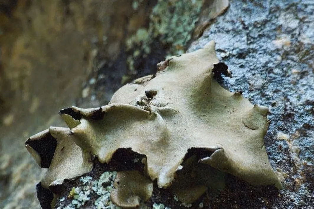 每 年 春 夏 的 庐 山 里 ,在阴暗潮湿的光秃秃的石头上,宛如一把把被撑开的柔柔的小伞屹立着,把山石装饰得典雅华贵。这些小伞就是石耳。石耳是一种菌类,体扁平,呈不规则圆形,通常背面呈灰色或绿色、有黑色绒毛,腹面黑褐色或黄褐色。