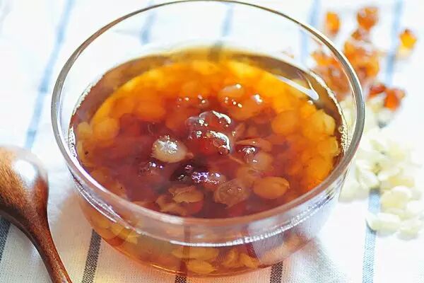 这道甜品很适合女同胞喝,桃胶美容养颜,红豆、薏米祛湿减肥,很不错哦。