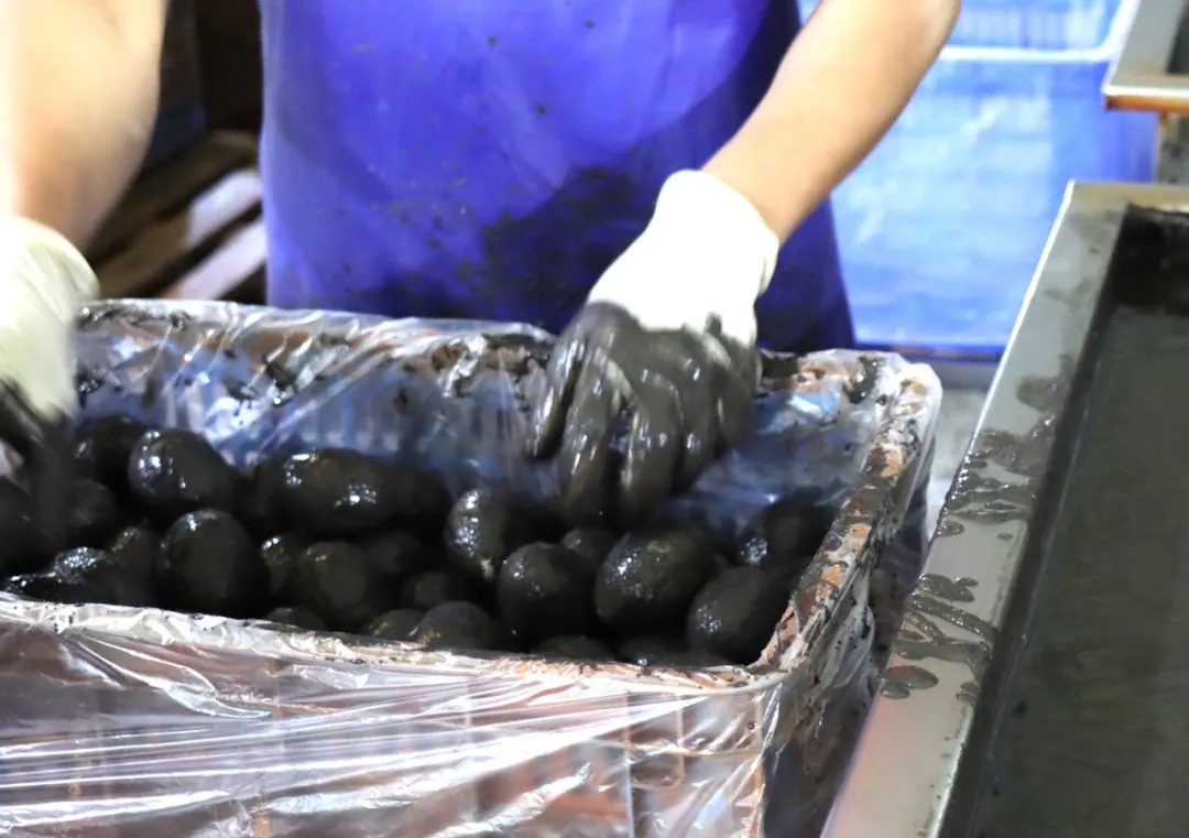 公司拥有15000㎡自建厂房,构建了从饲料定制、养殖管理、蛋品分级、腌制加工、产品应用的上下游一体化管理模式,以全产业链保障蛋源及产品品质安全。在蛋品制作上,传承与创新草木灰黄泥复合腌制配方,采用48天慢腌工艺,从源头确保产品口感与品质稳定。