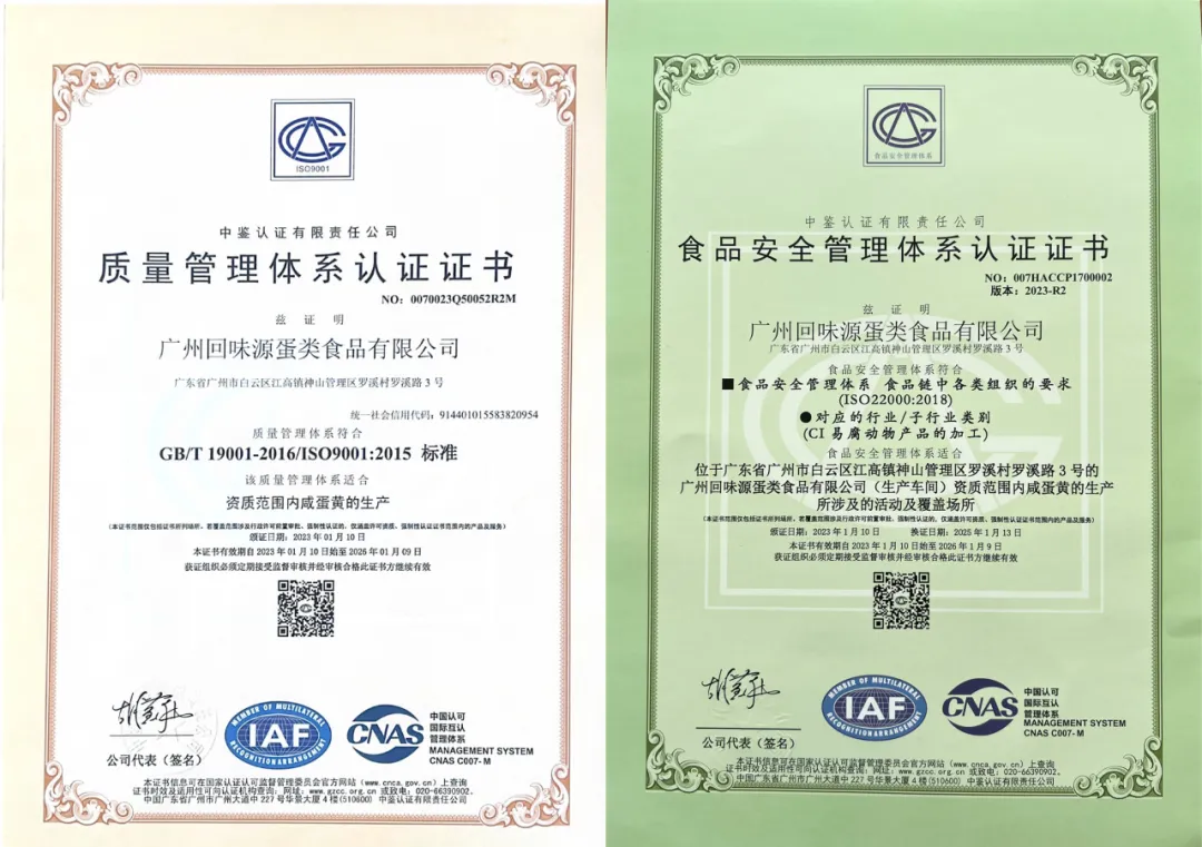 • 管理体系认证:ISO 9001:2015质量管理体系认证、ISO 22000:2018食品安全管理体系认证、HACCP体系认证