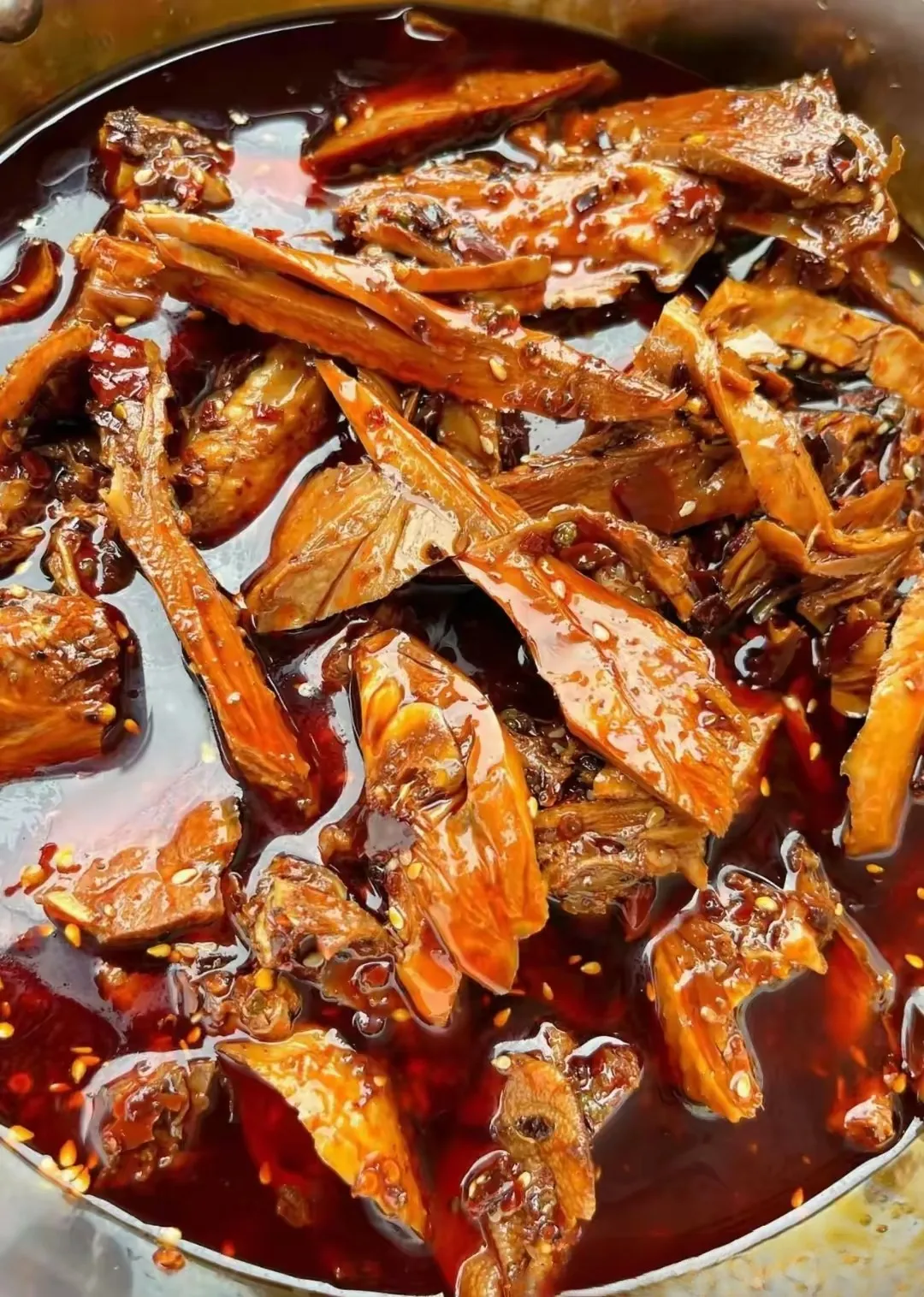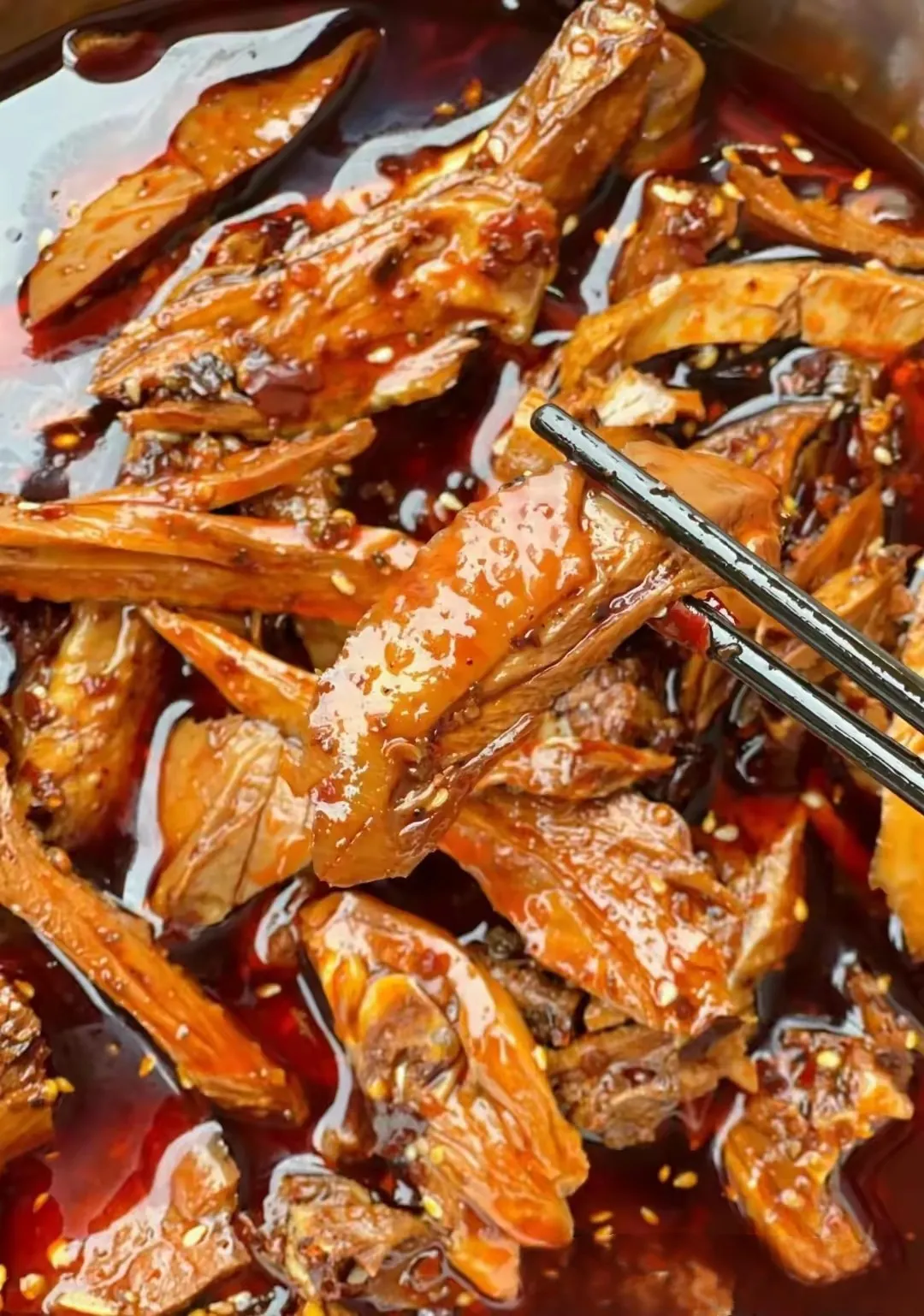 5.锅中加入菜籽油烧至260度,油温降至180度开火,加入小葱、生姜、大葱、香菜、香料炸制表面金黄捞出。