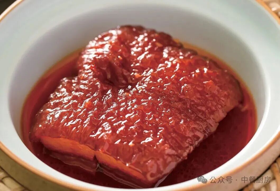 4.准备销售时,把猪肉块放蒸箱内,蒸约30分钟,保温待用。出菜时取1块五花肉把皮向上,放入带盖的窝碗内,加50毫升原汁,蒸约10分钟,取出来即成。