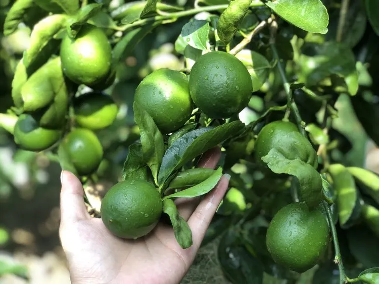 塔希提无籽香水柠檬来源于中国台湾省后引进至广东阳春种植,浓郁清新的味道,酸爽多汁,果肉鲜嫩维C满满的,老少皆宜。种植基地日照充足,从挂果到zui佳食用期都是青色。因为光照角度原因,360°被太阳关爱的情况下就是深绿的,如果有叶子遮挡住某个角度的话会出现黄绿,都是正常的果色。