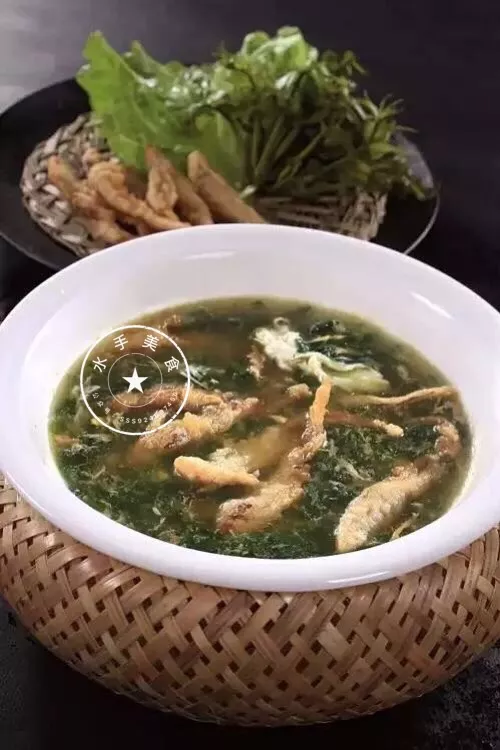 春天的刀鱼骨软如绵,油炸后外酥内嫩,可整条入口,配上鲜美的荠菜羹一同上桌,可搭配食用,也可直接将刀鱼泡到荠菜羹里,别有一番风味。