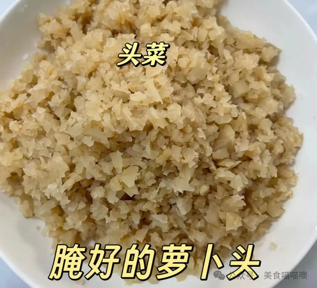 3,锅里多放点猪油,倒入肉末煸炒出油脂,倒入姜末翻炒一下,再把剁碎的香菇,腊肠,芋头,腌制的萝卜头放进去一起翻炒,加点蚝油,鸡精,生抽调味后盛出备用