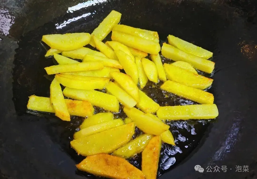 另起锅 , 倒油 , 油热了把土豆条放进去。