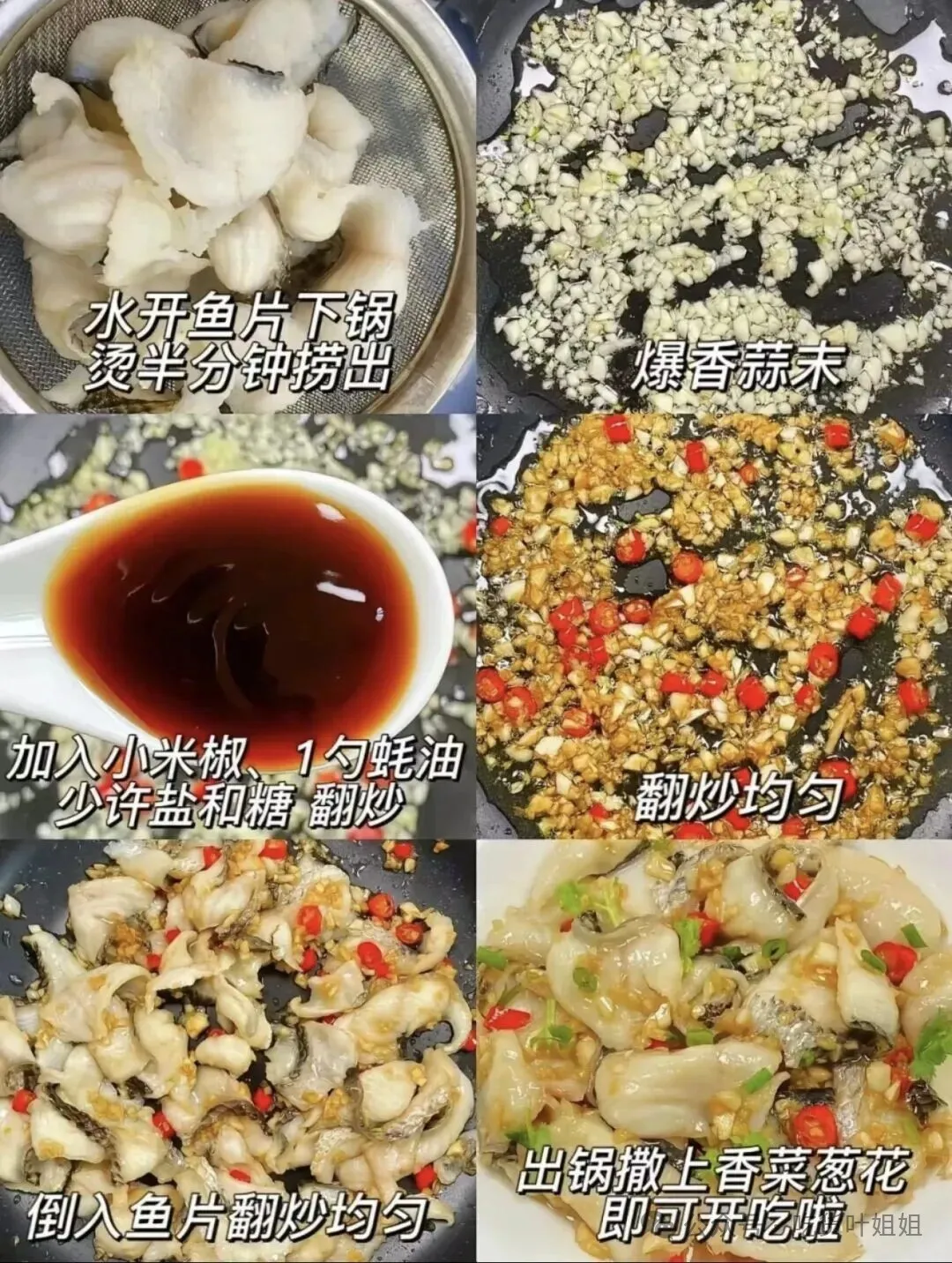 1. 水烧开,鱼片下锅烫半分钟,捞出沥干备用。