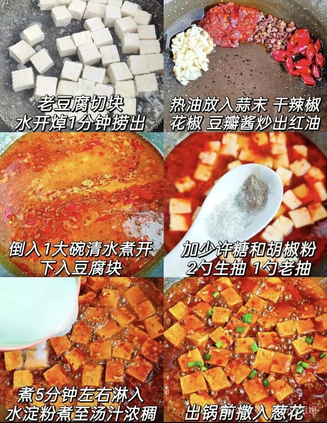 食材:老豆腐、蒜末、干辣椒、花椒、豆瓣酱、生抽、老抽、糖、胡椒粉、水淀粉、葱花