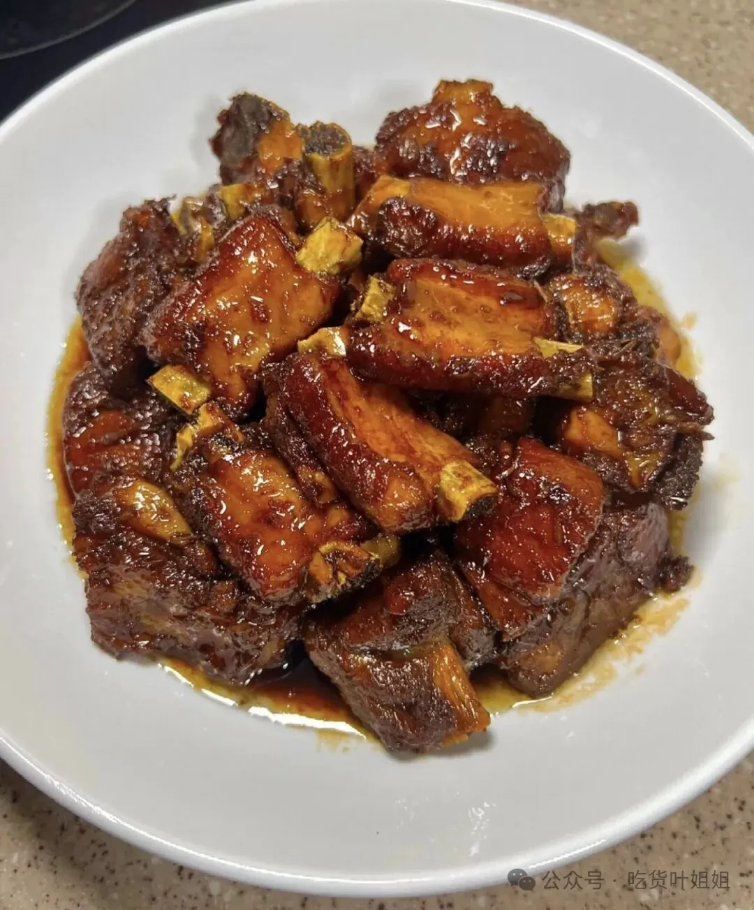 食材:排骨、冰糖、姜片、料酒、糖醋汁(生抽+老抽+醋+糖)、热水