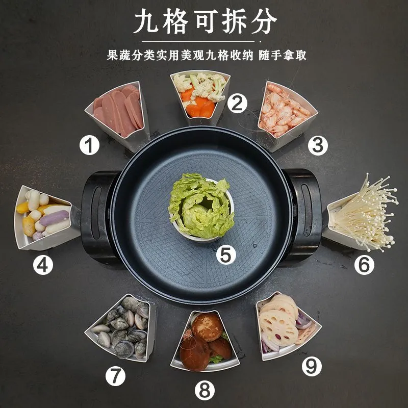 这款备菜盆的一大亮点在于其精心设计的分格。多个形状各异的格子,能够将不同种类的蔬菜、丸子、菌菇等火锅食材分类放置。例如,细长的格子适合放置金针菇,圆形格子可以摆放鱼丸,方形格子则能规整地收纳豆腐块。这样一来,食材不再杂乱无章,而是有条不紊地排列在盘中。据统计,使用这种分格备菜盆,准备火锅食材的时间平均可缩短20%,因为无需在烹饪过程中频繁寻找食材,大大提高了烹饪效率。