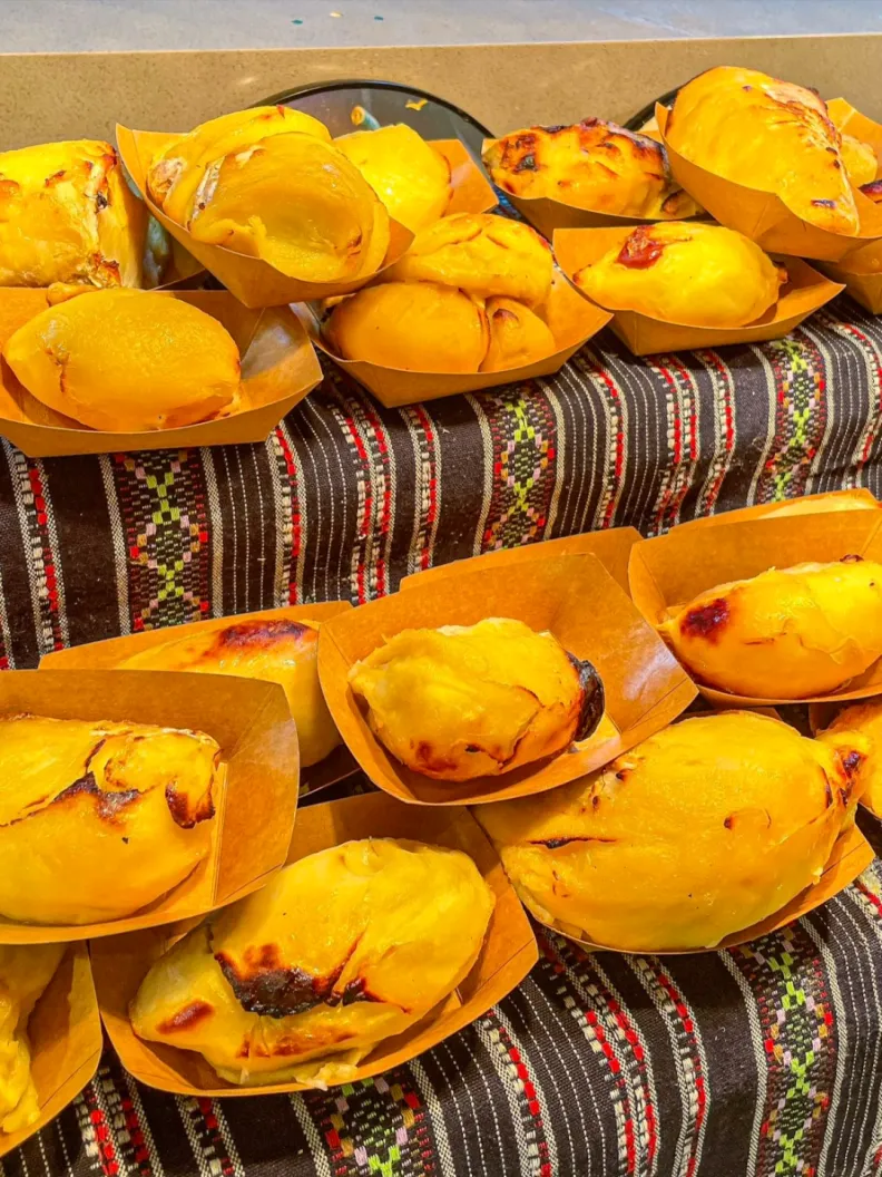 自助榴莲,果肉金黄饱满,香气浓烈霸道。入口如冰淇淋般绵密顺滑,甘甜与微苦交织出复杂层次。冷吃似奶糕,烤后焦糖流心。这份无限量供应的“水果之王”,让嗜好者直呼过瘾。