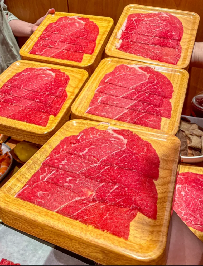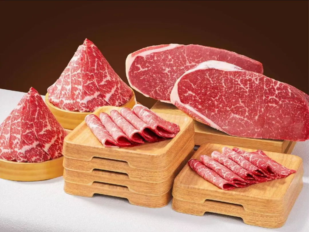 M级和牛,其如霜降般的细腻油花,织就大理石般的瑰丽纹理。轻咬一口,脂香瞬间迸发,化为舌尖上的极致享受。肉质柔嫩如丝,汁水充盈,每一口都是味蕾的奢华盛宴,令人回味无穷。