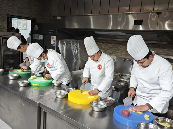 本次大赛聚焦行业核心技能,设置中式烹饪热菜、切配、凉菜、烧烤、面点及中西式点心等5个竞赛项目,覆盖餐饮服务关键环节,为不同特长的从业者提供了展示舞台。赛前,选手们身着统一工装,精神抖擞地检查食材与器具;比赛开始后,赛场瞬间变身“匠心秀场”:切配选手运刀如飞,萝卜、土豆在指尖化为均匀的丝、丁、片,展现扎实基本功;热菜赛场火光闪烁,传统家常菜与创意融合菜轮番登场,选手们在火候把控与调味搭配中尽显巧思;面点区域香气四溢,中式花卷层次分明,西式甜点造型精致,每道作品都凝聚着选手的汗水与智慧。与此同时,服务类选手有条不紊地完成餐桌摆台等流程,举手投足间彰显专业素养与服务精神。