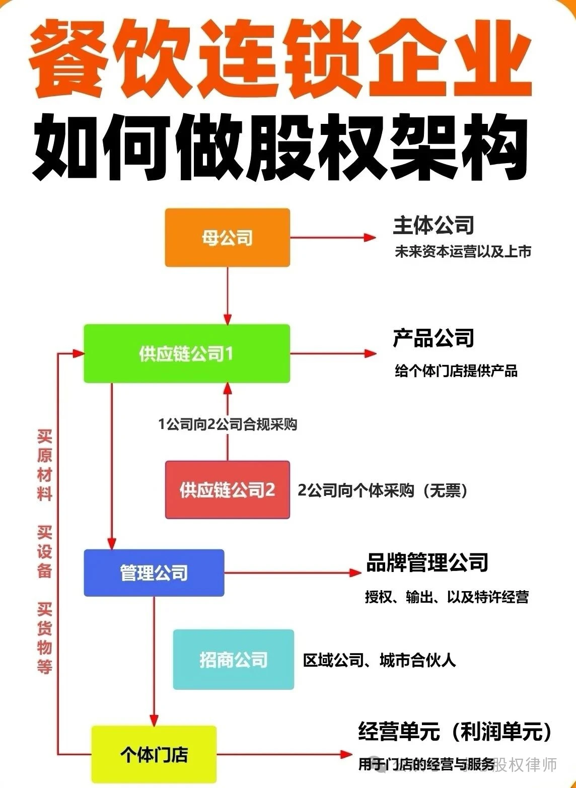 餐饮食材网架构采用母公司统控+专业化子公司分工的模式,核心是将不同业务模块拆分至独立主体,实现“风险隔离、利润归集、资本运作”三大目标,是餐饮连锁规模化发展的典型架构设计。