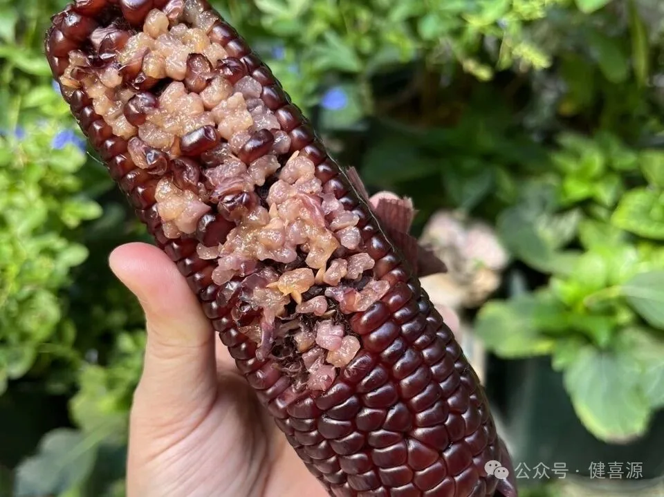 黑糯玉米其实是紫黑色,由于富含花青素而颜色紫黑。同时黑玉米的微量元素和多种氨基酸比普通玉米更高,营养更丰富。
