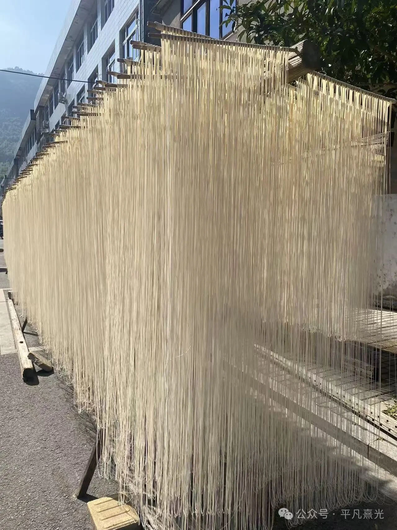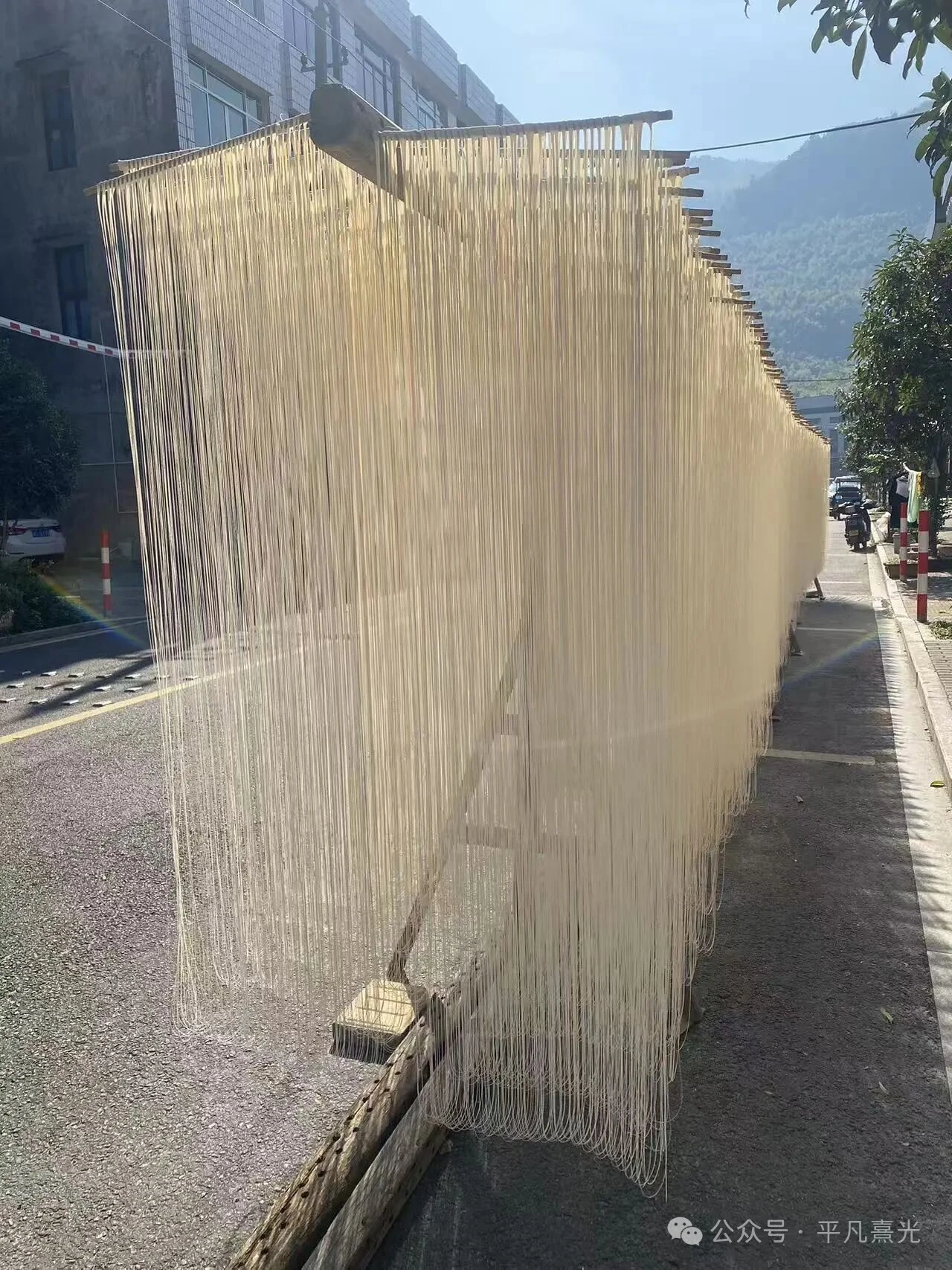 食材君小时候吃过素面,但不知道是怎么做出来的,嫁到老公这边才知道制作过程。平阳坑镇上做素面的老手艺人也不多了,所以他们有晒出来,基本上都是不怕销路,都有人提前订购了的,甚至有部分是远销国外。