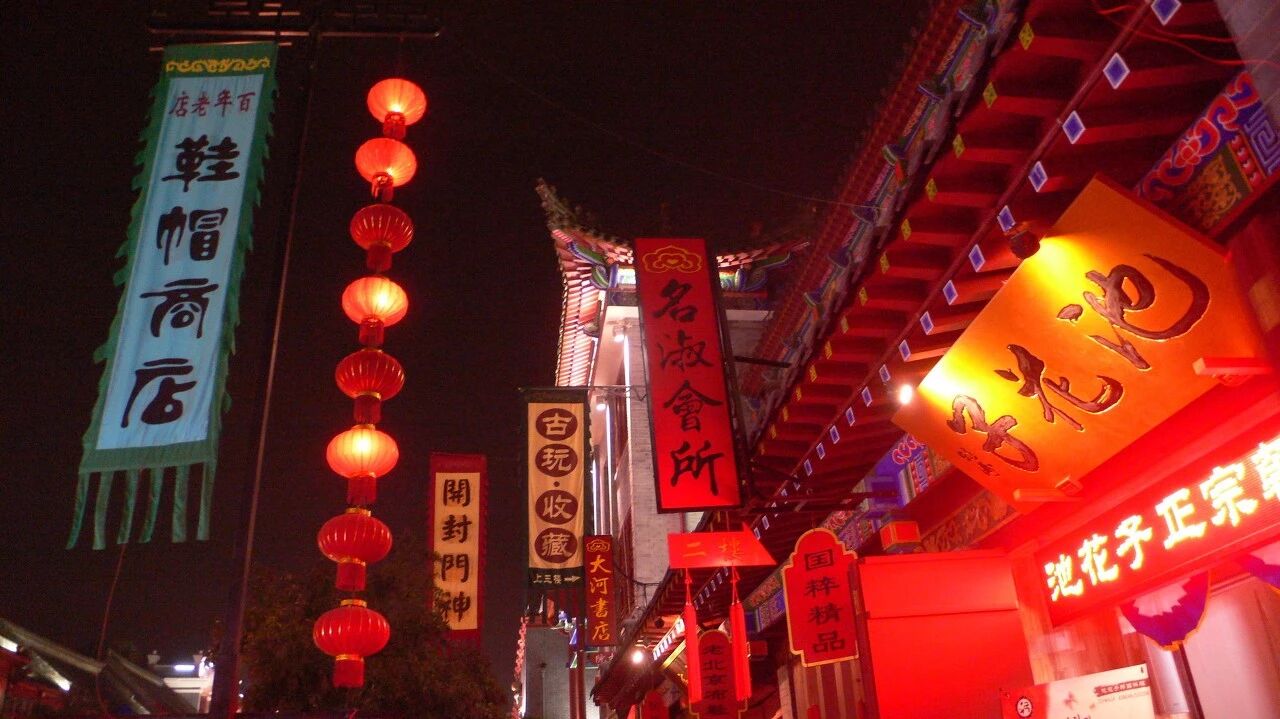 它与开封鼓楼相连,白天文艺气息十足,到了晚上便是灯火辉煌,这里有老开封人喜欢的黄焖鱼、馄饨、火烧夹羊肉、油茶、豆沫、胡辣汤,也有年轻人喜爱的杏仁茶、八宝粥、冰糖红梨、花生糕等。
