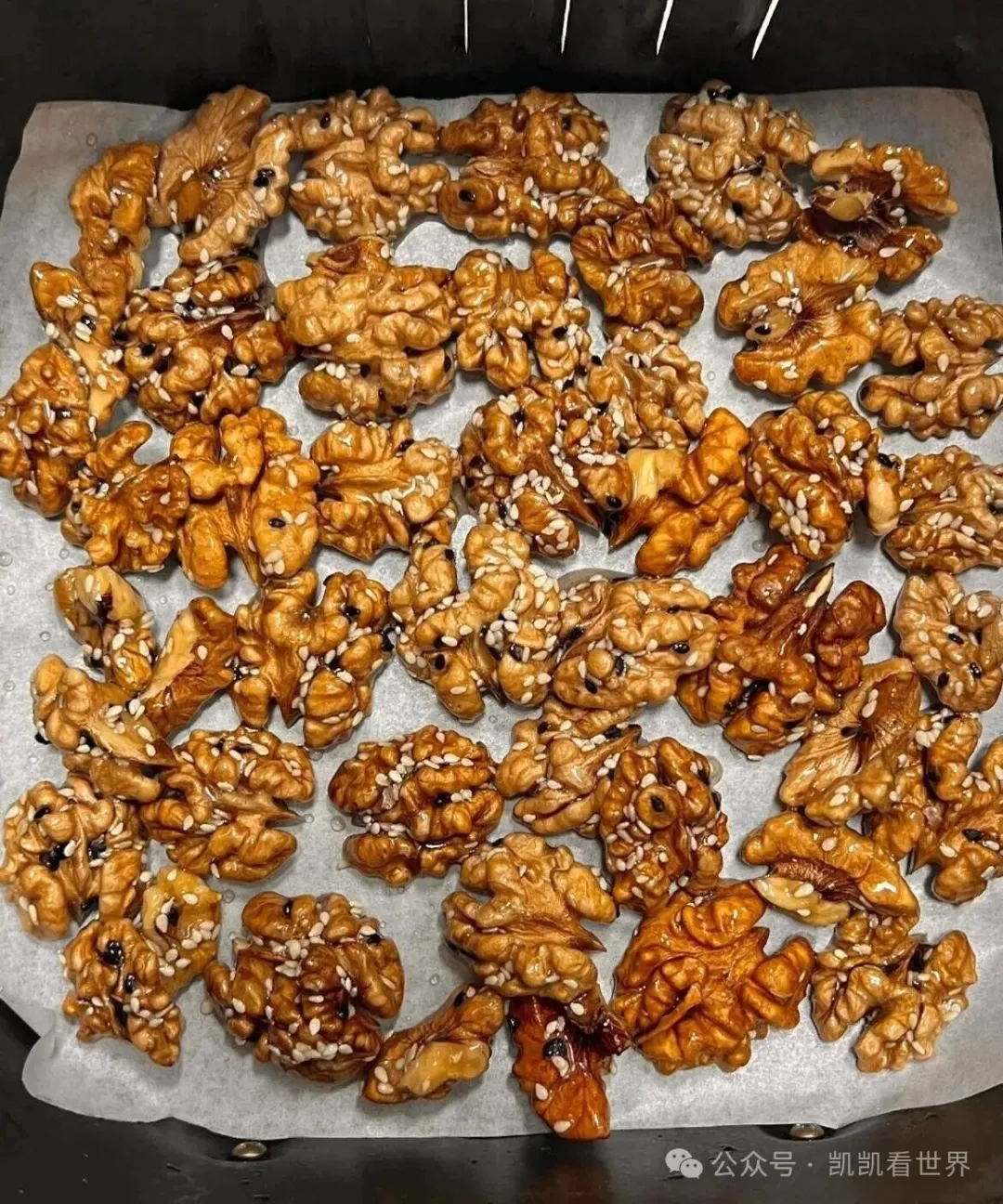 过去,核桃总是被当作补脑的坚果随手一抓就吃。但近年来,琥珀核桃成为不少甜品店的新宠。这种做法将核桃仁用糖浆慢火熬制,直到表面挂上一层晶莹剔透的糖衣,外脆里软,口感丰富。2019年北京某老字号餐厅曾推出限量版琥珀核桃,开售当天即售罄,成为社交网络上的热门话题。类似的创新还在上海出现:当地一家糕点工作室不仅制作琥珀核桃,还加入辣椒粉,打造出“微辣版”坚果零食,一度供不应求。