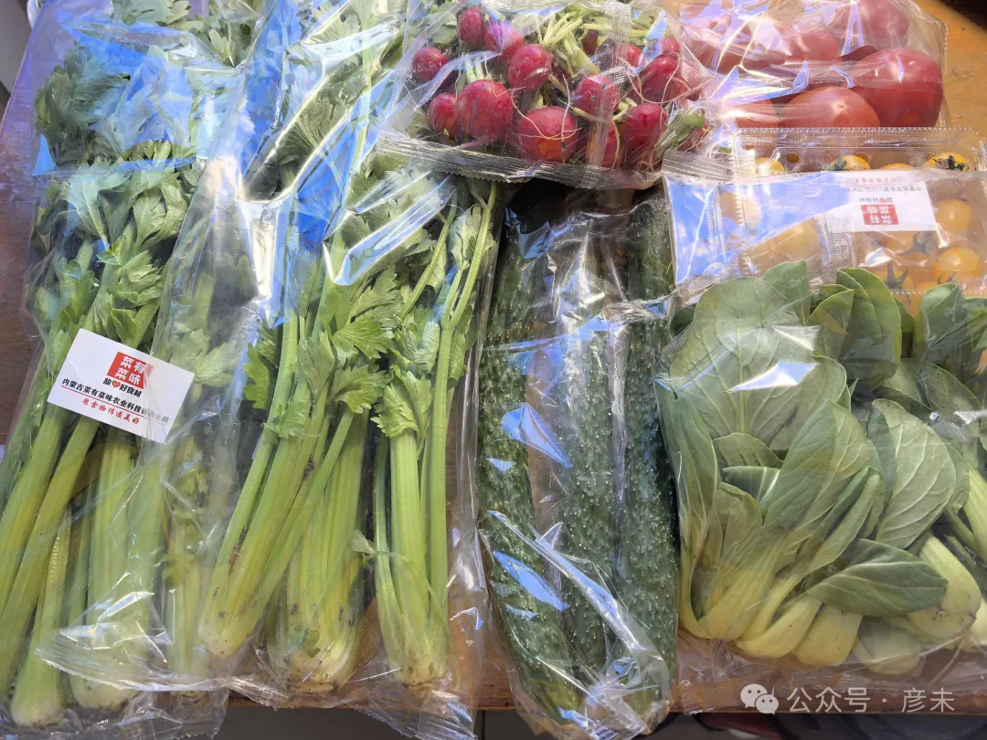 几位大学生模样的工作人员正有条不紊地忙碌着:将清晨刚采摘的青菜、芹菜、黄瓜、西红柿等时令蔬菜分装密封,一张张价签仔细贴好,耐心回应着长辈们关于菜品价格、新鲜度的各种询问,温文尔雅的模样,成了现场最温柔的底色。