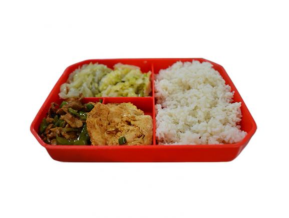 一大荤+二素菜+米饭+汤 Including one kind of meat diet, two kinds of vegetable, and a portion of soup, rice |