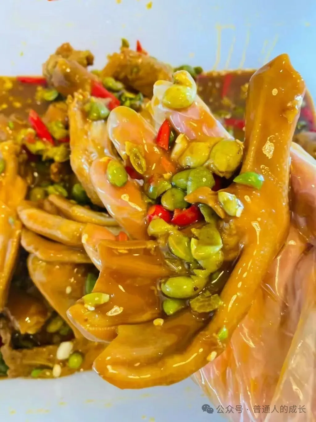 核心:先煮至软糯脱骨,再用山黄皮酱汁冷藏浸泡,酸辣开胃不腻。