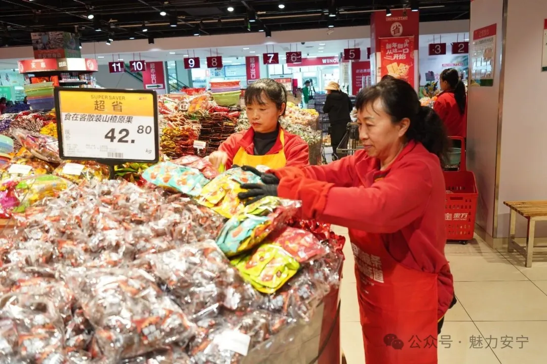 走进安宁的各大超市,年味扑面而来。货架上,新鲜蔬果色泽诱人,休闲零食堆积成山,礼盒礼品摆放整齐。一片红火之中,是满满当当的安心。顾客往来穿梭,挑选着团圆饭的食材、走亲访友的伴手礼,每个人脸上都洋溢着过节的喜悦。