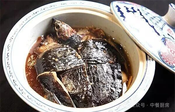 2.把猪五花肉块、蘑菇块、独蒜和大葱节放青花瓷钵内垫底,再把甲鱼块按原形摆放在上面,加入拍破的白胡椒粒、大量的花雕酒、少许盐、白糖和酱油,盖上盖子,用棉纸封好,入蒸箱蒸约1.5小时,取出来撕去棉纸便可上桌