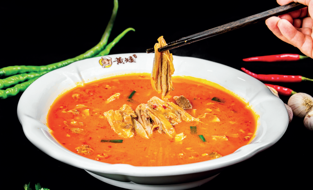 这道十大招牌菜的秘诀在于“纯粹”。选用生态黑山羊,肉质紧实膻味轻。薄切后以羊汤为底,加入特制干辣椒粉烧制,成就汤色红亮、香辣醇厚的视觉味觉双冲击。它的工艺关键在薄切快出,保证效率与入味。
