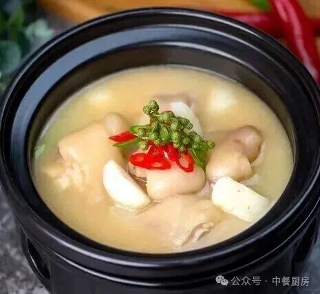鲜麻辣鲜露30克 、 低成本浓汤800克 、 野山椒5克、 鸡粉10克、 厨师浓汤调汁(2000克开水或骨汤加入)15克、 醇香一品汤13克、 浓缩鸡汁17克、白汁粉19克