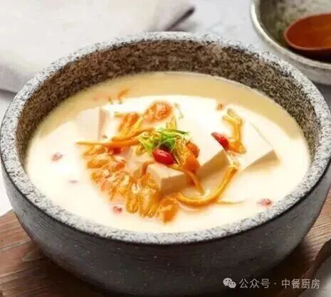 自然鸡汤粉10克、 厨师浓汤8克 、 鸡精5克、 真味海珍酱8克 、 海胆酱10克 、 盐2克、 白胡椒粉0.5克、 二汤400克、 豆浆50克