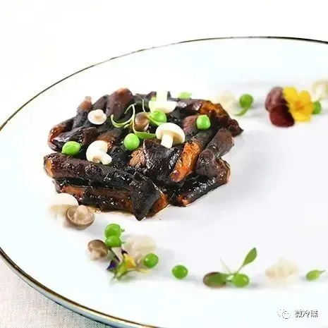 3. 净锅入少许清油将姜末炒香后,放入黑松露酱,海鲜酱和炸好的鸡纵菌一起翻炒两下,然后加入适量清水,加入蚝油、鸡粉、白糖、老抽一起小火煨5分钟左右至汤汁见底,勾芡后淋黑松露油出锅装盘,将沸水好的白玉菇、 蟹味菇、蜜豆装盘点缀即可。