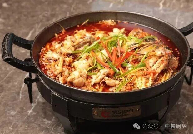 美蛙1000克、鱼头1个(约1000克)、鲜子姜丝200克、干青花椒50克、红小米椒碎100克、青红椒丝50克、泡子姜碎50克、盐、味精、鸡精、子姜酱、子姜油、鲜汤、化猪油、色拉油各适量