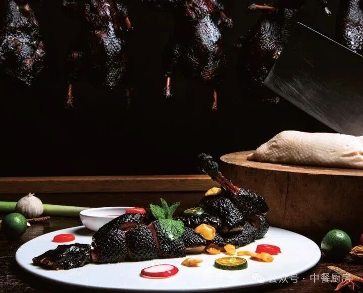 剑阁麻鸭1只、酥蚕豆5克、樱桃萝卜1 个、叉烧酱1 瓶、排骨酱1 瓶、海鲜酱1 瓶、老抽10毫升、香料盐15 克、鲜汤1500 毫升、卤水1锅、色拉油适量