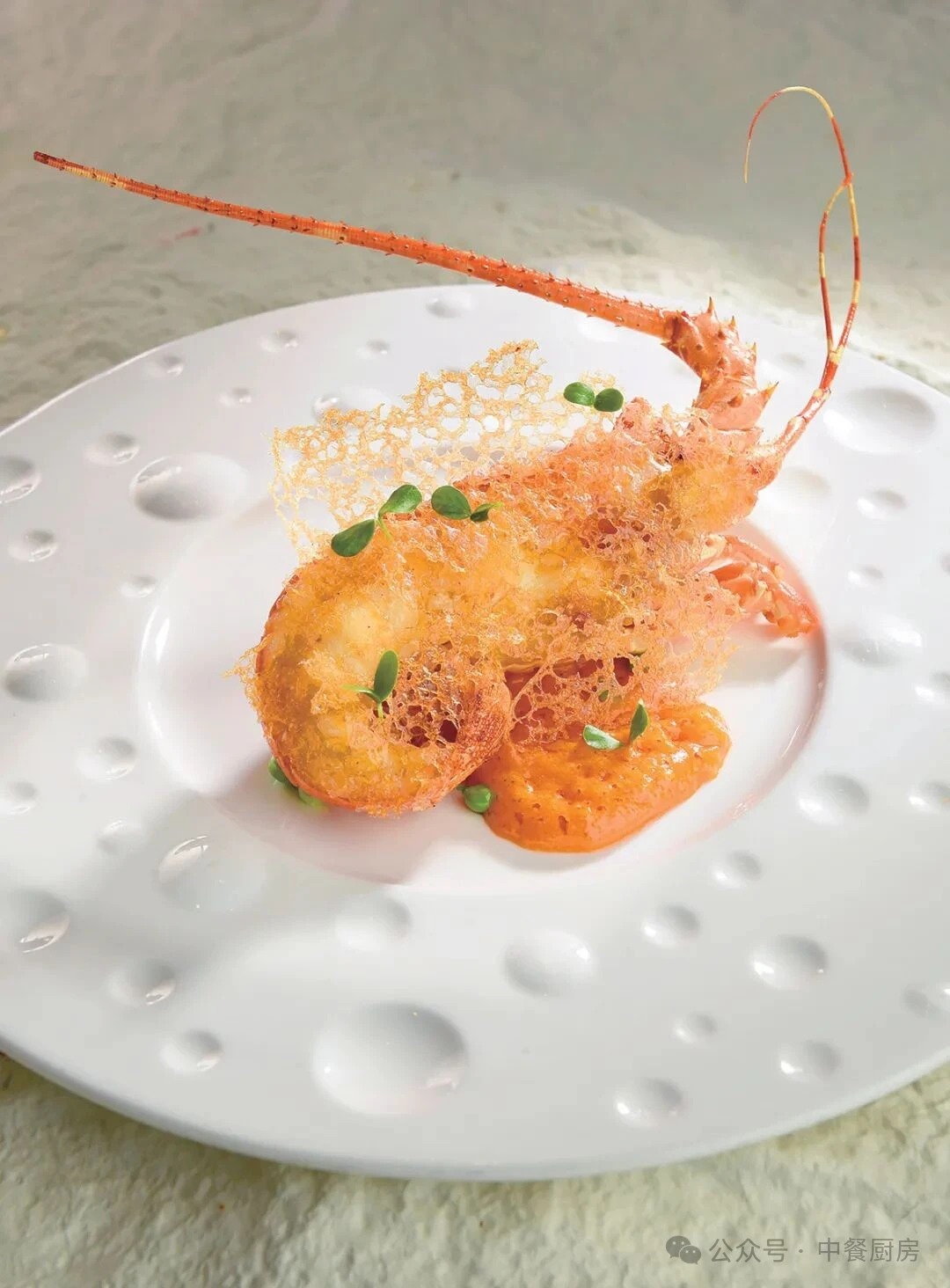 青龙虾仔半只250 克油水面浆25克怪味细末汁25克香椿苗少许