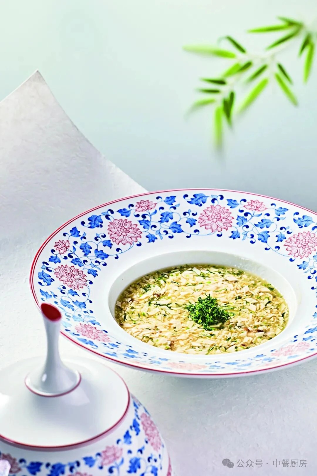3.萝卜丝用牛肉清汤煨熟,捞入盆中垫底。将牛头肉片、吊龙牛肉坨下入清汤锅煮入味,下入香葱花、香蒜苗花、香芹菜碎,调入鸡精、味精调味,淋入锅边醋,撒匀大红袍花椒面5克,淋入花椒油,起锅全部倒入垫有萝卜丝的盆中,再撒上适量的香葱花、香蒜苗花、香芹菜碎和牛霖肉碎盖面,最后撒入适量的花椒面即可上桌。