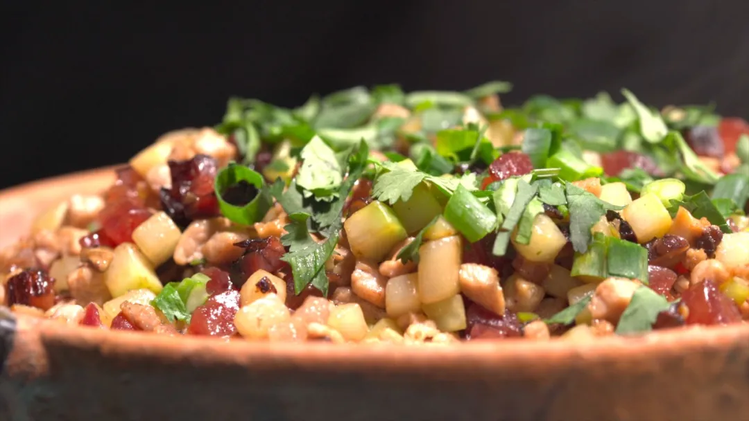 加入切细的香芹、芫荽、葱等拌匀