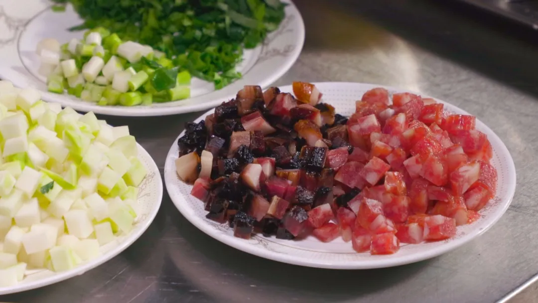 腊肉和腊肠的油脂包住米粒焦香四溢